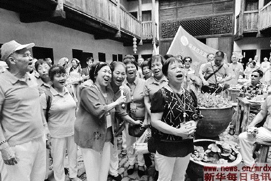 ▲8月7日,来自海内外的200余名客家山歌名家及爱好者齐聚江西全南县,通过对歌联唱,共诉客家情,齐唱新生活。这是客家山歌爱好者在现场飙歌。