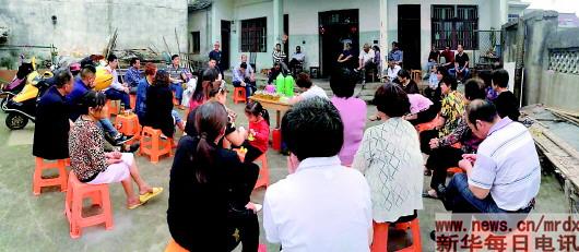 ▲乡镇干部走村入户召开“户长会议”听取群众治理意见。(干窑镇供图)