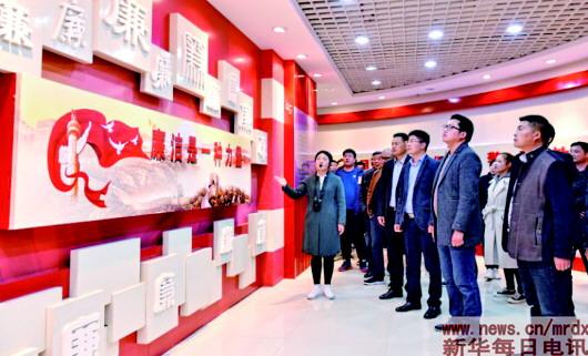 今年以来,江苏省沭阳县纪委监委采取“请进来+走出去”的方式,通过定期举办周末讲堂、组织外出培训等活动,努力打造一支既政治过硬又本领高强的纪检监察“铁军”。这是纪委监委人员在观看反腐展览。    (张咏梅、徐亮杰)