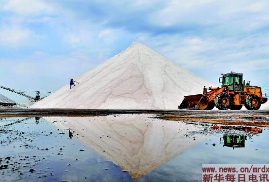 近日,长芦盐区河北省唐山海港经济开发区大清河盐场的春扒工作进入尾声,今年预计春盐产量将达29万吨。     新华社记者杨世尧摄