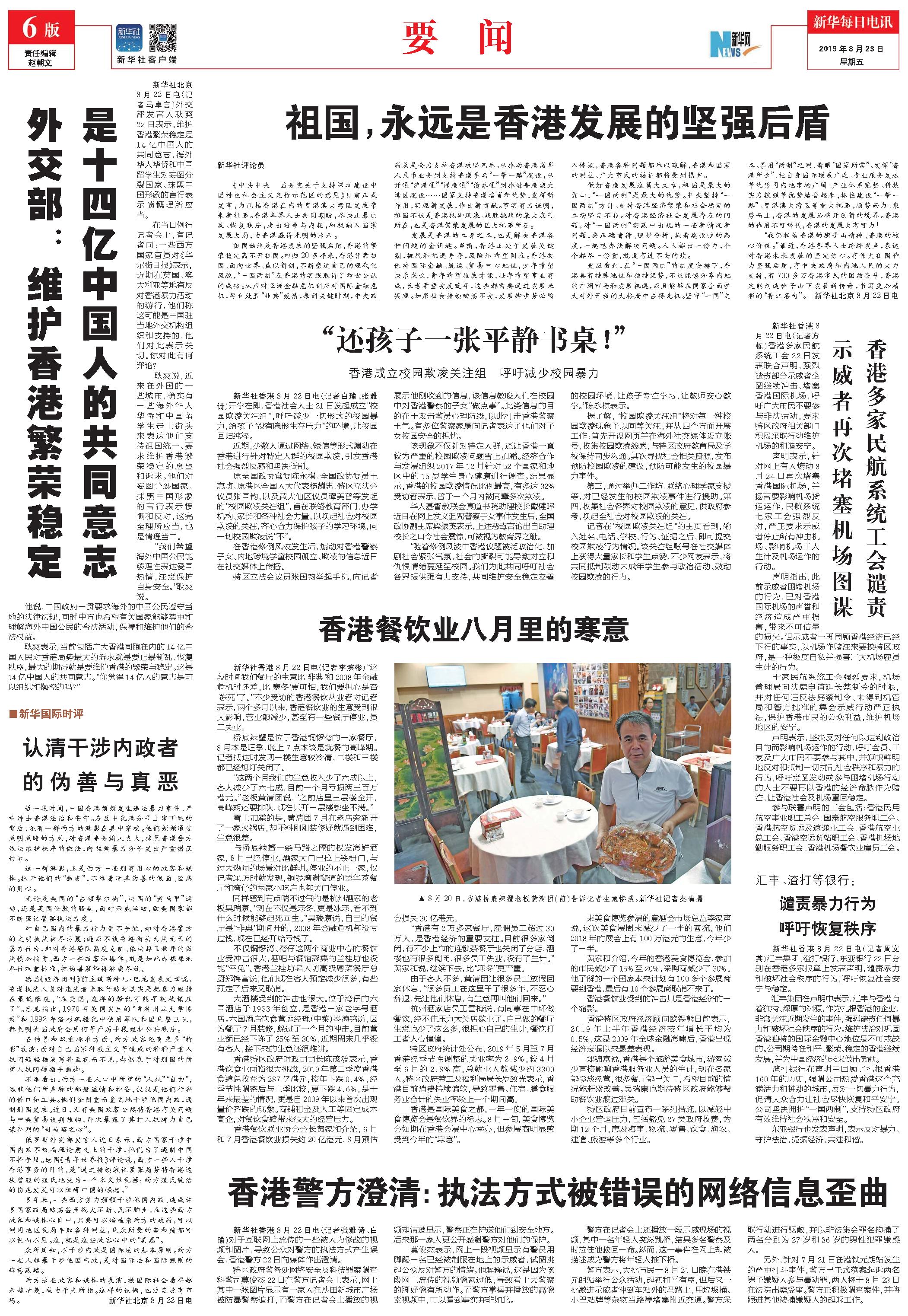 谴责暴力行为 呼吁恢复秩序 (2019年08月23日) |