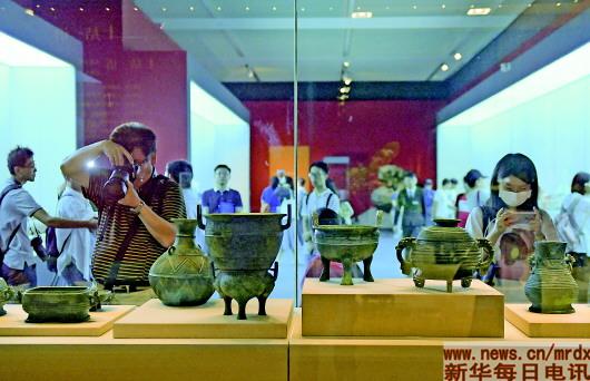 ▲9月17日,观众在展柜前观看曾伯克父青铜组器。当日,“回归之路——新中国成立70周年流失文物回归成果展”在北京中国国家博物馆开幕。