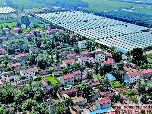 现在的兰考县张庄村村貌和种植大棚。