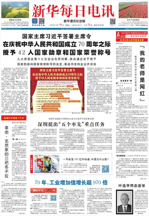 国家主席习近平签署主席令在庆祝中华人民共和国成立70周年之际授予42人国家勋章和国家荣誉称号人大常委会第十三次会议在京闭幕,表决通过关于授予国家勋章和国家荣誉称号的决定,栗战书主持会议并讲话