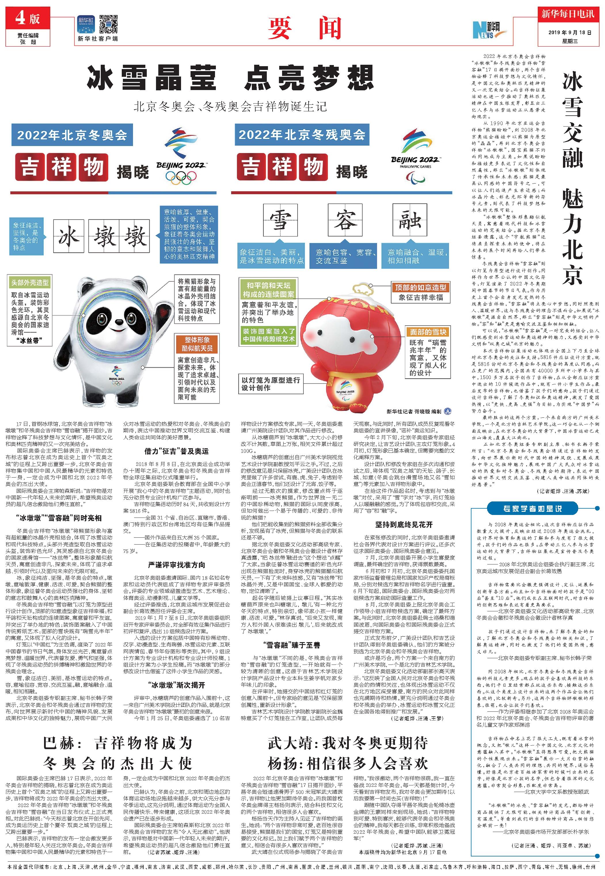 巴赫:吉祥物将成为冬奥会的杰出大使