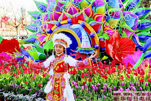 1月28日,一名小女孩在昆明大观公园鲜花盆景前留影。春节临近,昆明市大观公园鲜花盛开,吸引众多市民和游客前来观赏。 新华社记者杨宗友摄